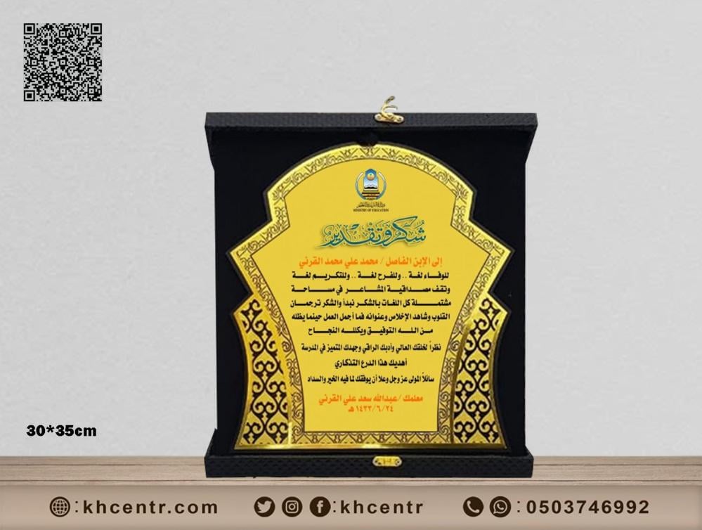 • يمكنك طباعة عبارات الإهداء والصور والشعارات على الدرع عبر إدراجها في المكان المخصص