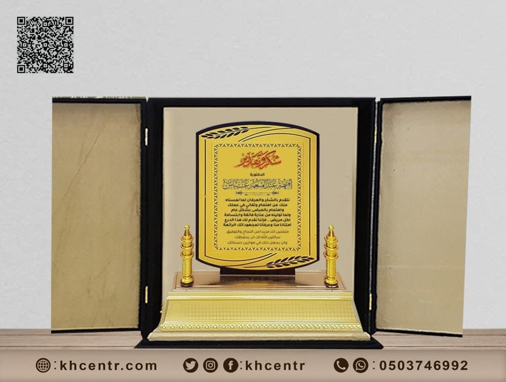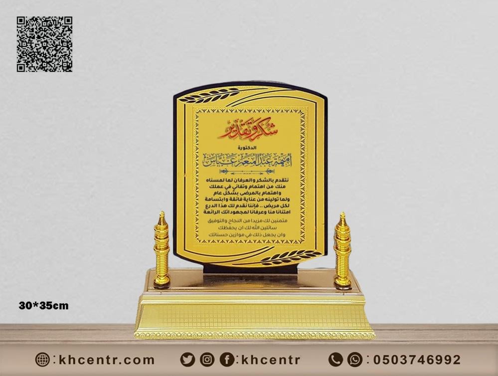 - يمكنك طباعة عبارات الإهداء والصور والشعارات على الدرع