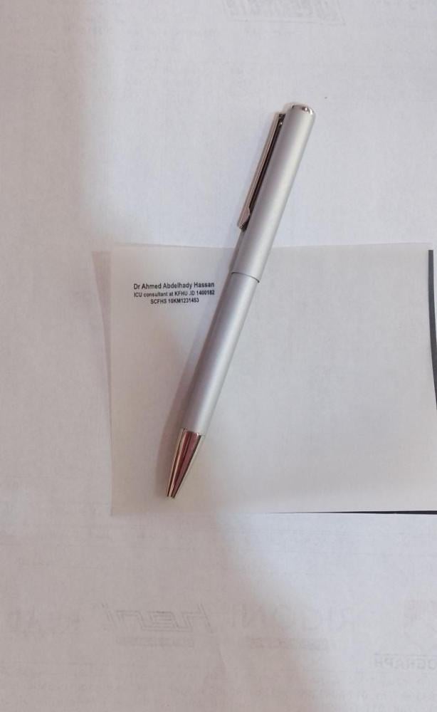 بالنسبة للقلم فيمكن ان يكون عليه اسم او توقيع او الاسم والتوقيع معا