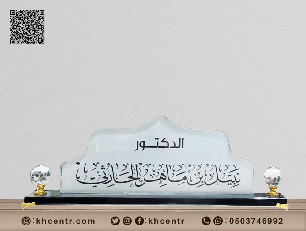 • يمكن طباعة الاسم والمنصب مع امكانية طباعة شعارات على اللوحة المكتبية