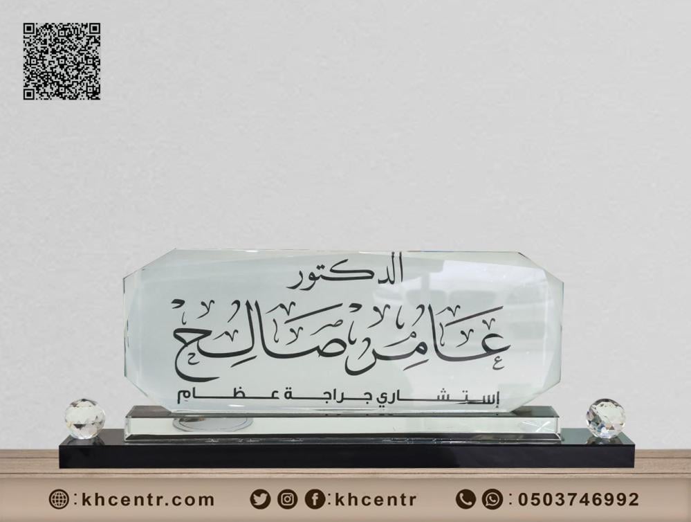 - يمكن طباعة الاسم والمنصب مع امكانية طباعة شعارات على اللوحة المكتبية