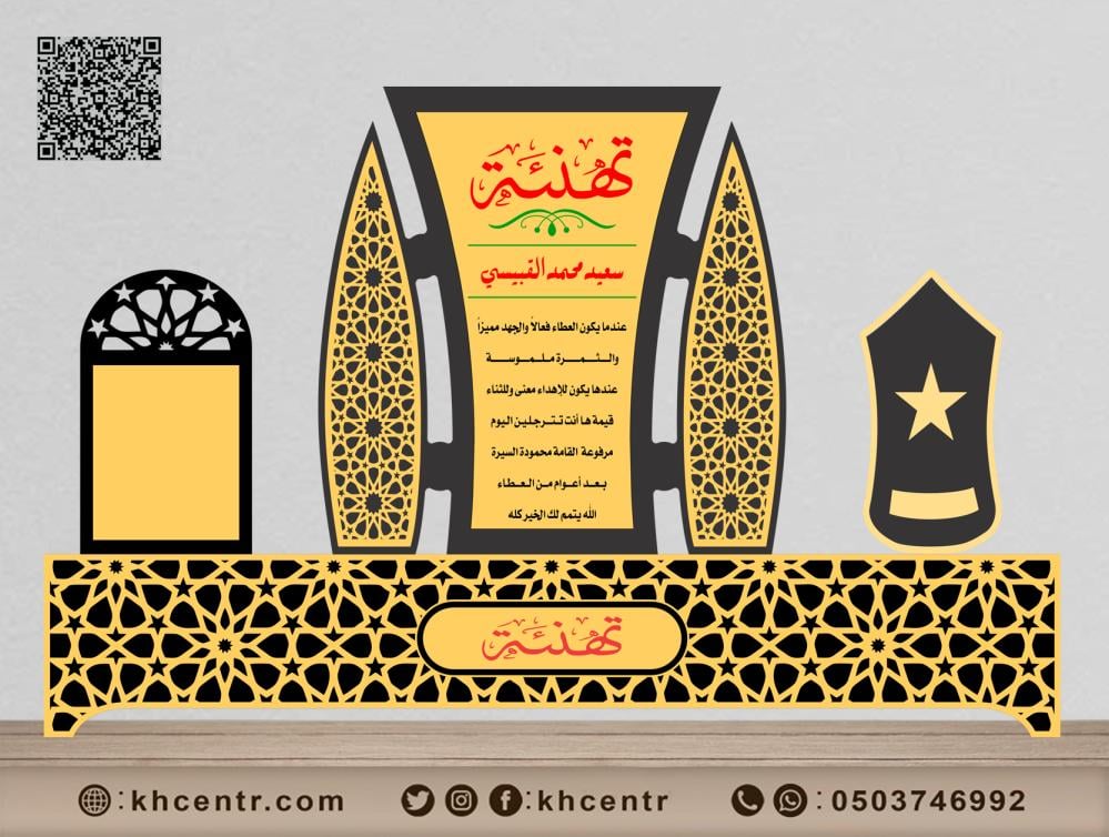 - يمكنك طباعة عبارات الإهداء والصور والشعارات على الدرع عبر إدراجها في المكان المخصص
