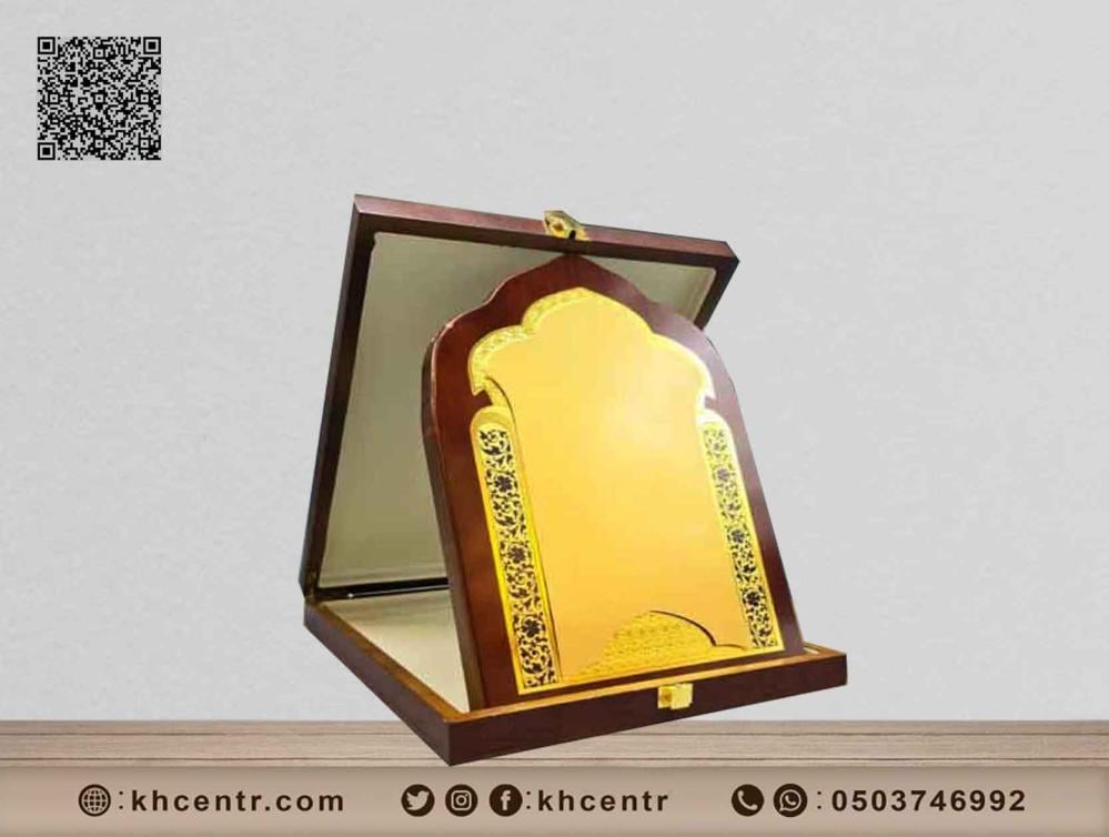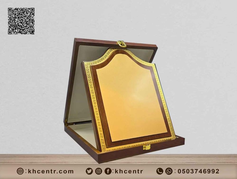 كريستال مستطيل 20 سم قاعدة خشب بيج