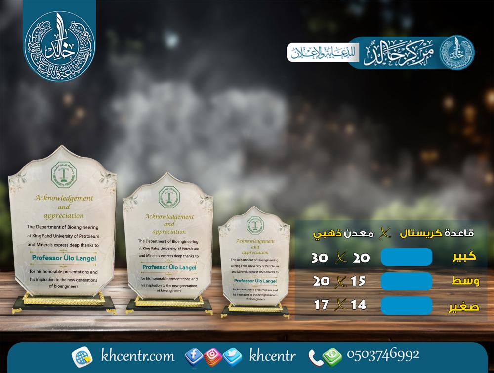 • المنتج درع كريستال + معدن ذهبي تعطي شكلا رائعا وجذابا بكتب عليه عبارات التهنئة او الاهداء بتصميم جميل