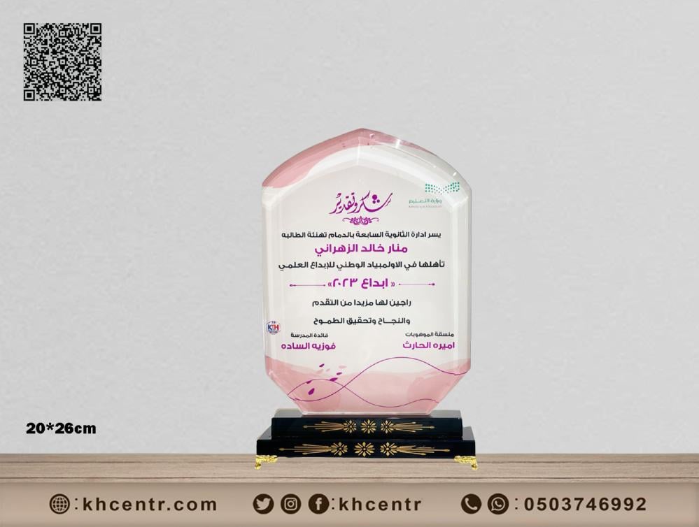 كريستال مستطيل 20 سم قاعدة خشب بيج