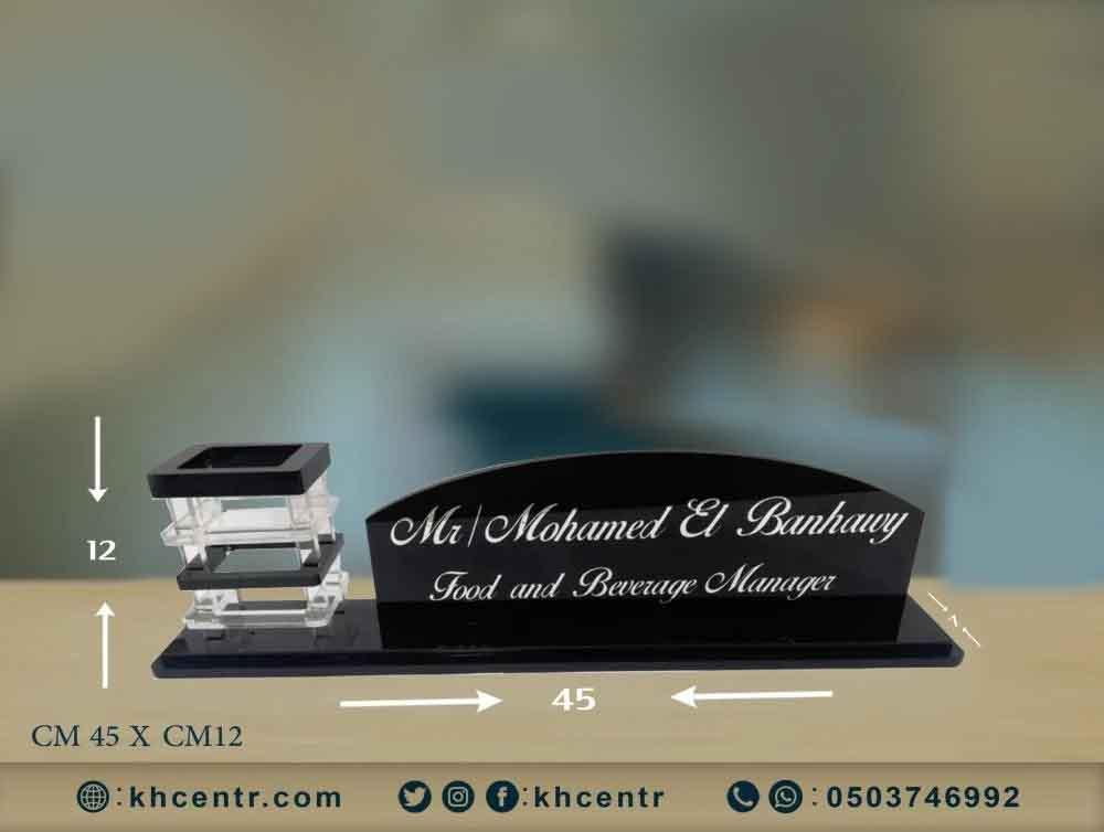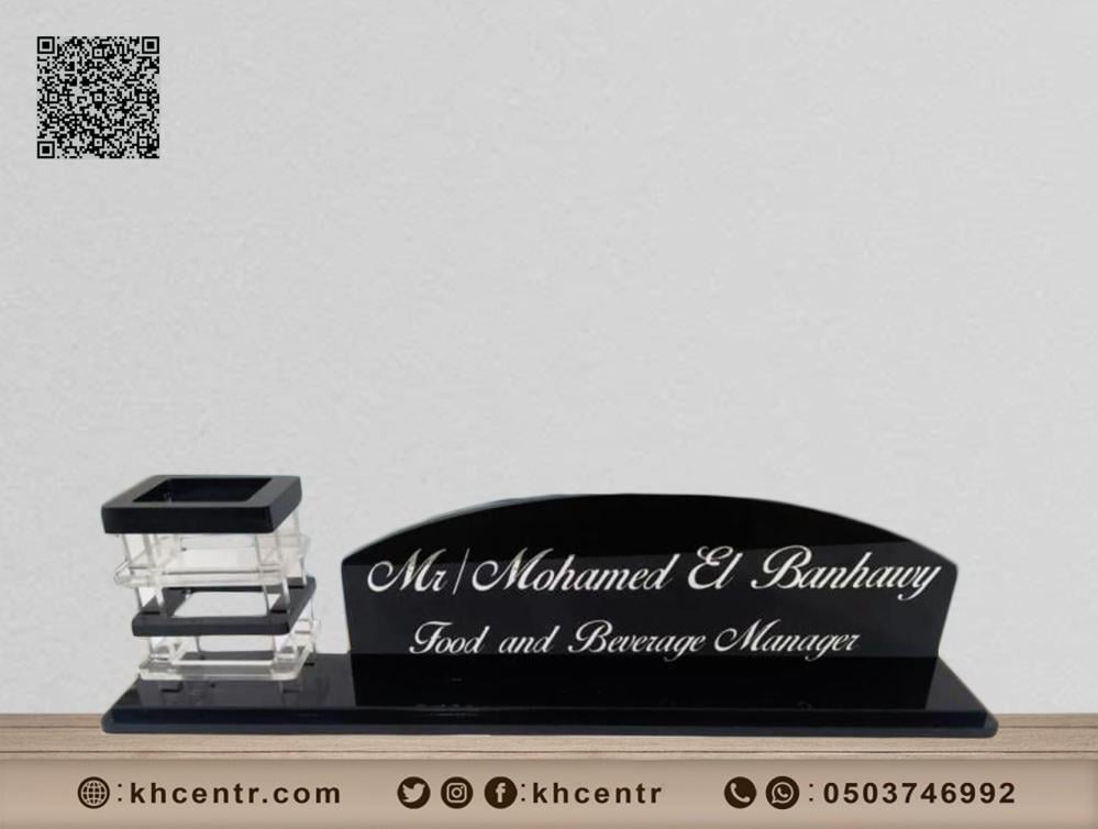 - ستاند اسم مكتبي بتصميم انيق وجذاب مع مقلمة الاقلام