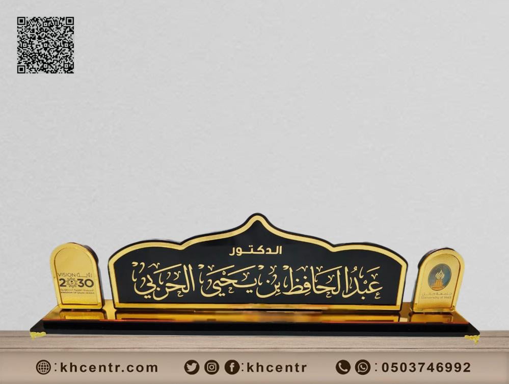 - ستاند اسم مكتبي بتصميم انيق وجذاب مع شعارين