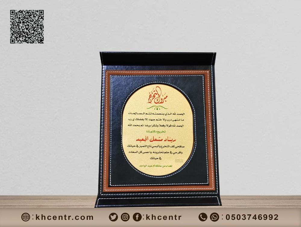 - يمكنك طباعة عبارات الإهداء والصور والشعارات على الدرع عبر إدراجها في المكان المخصص